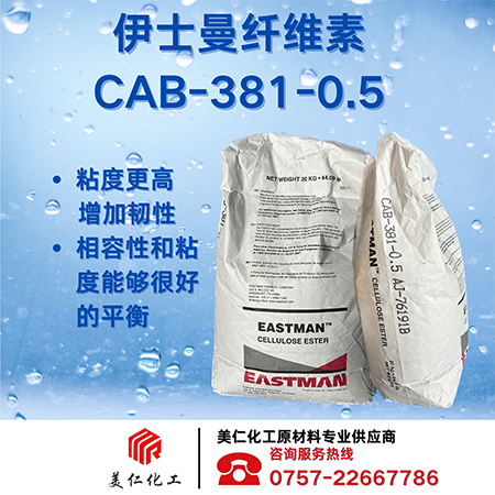 伊士曼醋酸丁酸纤维素(CAB-381-0.5)是一种纤维素酯,丁酰基含量中等低粘度。它主要用于低施工粘度和较高固体份场合。它可溶解在许多溶剂中与许多树脂均相混溶。它也允许使用目前已不受大气污染法规限制的混合溶剂,它是以能自由流动的干粉供货,按照美国医药及食品管理局(FDA)公布条文规定,伊士曼 CAB-381-0.5 是可以用于与食品接触的制品中。