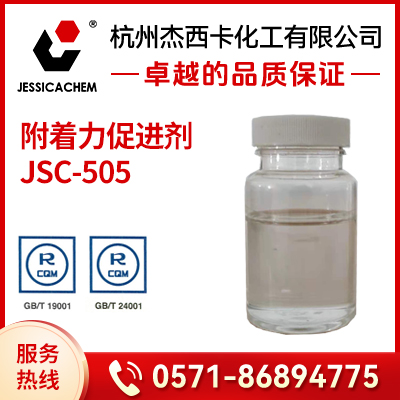 附着力促进剂 JSC-505为含酸性基团的有机化合物,主要用于油漆是烘烤漆,以增加附着力。用于醇酸氨基烘漆、丙烯酸氨基烘漆、其它烘烤体系请先试验。对全量1.5-2.5%研磨前、后添加皆可。