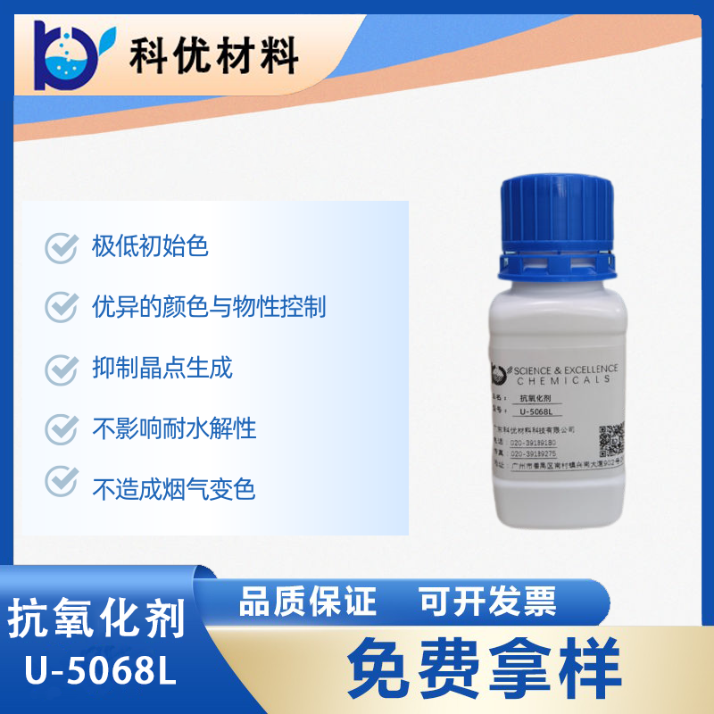 此外·U-5068L不会造成烟气变色·在TPU薄膜应用中·U-5068L可以有效抑制晶点生成,是常规抗氧化无法提供的性能。