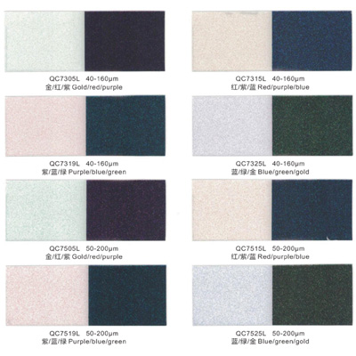 钻石变色龙系列珠光颜料是以玻璃鳞片为基材,通过多层和多种金属氧化物精确控制包覆厚度,从而制备的超强色度且随角异色系列产品,是一种创新光学效果的特殊材料,有着梦幻般的色彩及高镜面效果。
