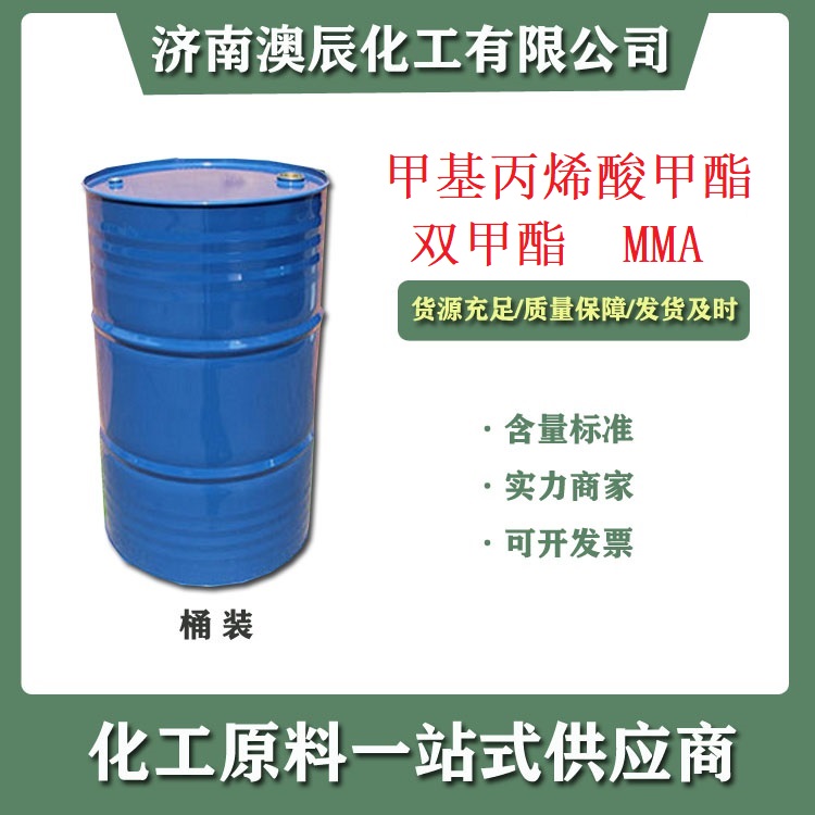 济南澳辰化工有限公司主营国标工业级桶装 甲基丙烯酸甲酯代理品牌齐全 现货充足每月稳定库存40吨 一桶起售全国可发货 可代发产品 工厂一手合同价格优势,产品质量保障 随时供应新老客户。