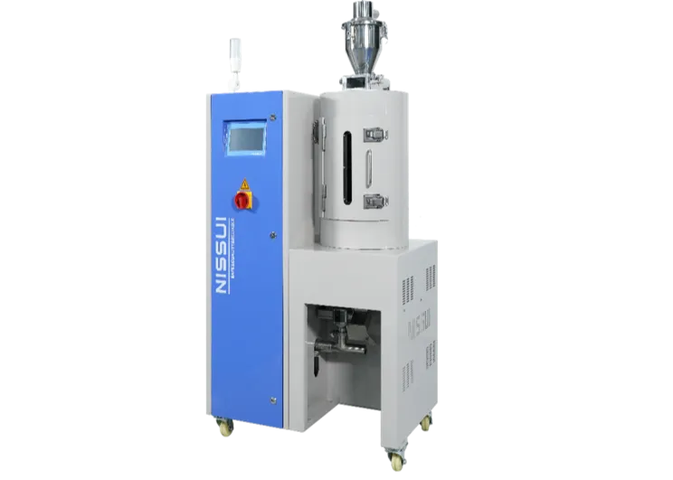 高性能无热干燥 采用双塔式除湿单元,可实现稳定的低露点空气供给,维修便利,使用寿命长。 ■ 密闭循环方式,无需外气的直接流入。 在由风机,过滤器,加热器,干燥料桶构成的完全密闭的独 立回路系统中,使一定 量的空气循环,同时补充由小型无热干燥器所产生的-40℃超低露点除湿空气的方式, 该方式无需 在冷却,再加热等复杂工程,也无需冷却水,有节能减排作用。 ■ 高干燥性能和清洁度 NS系列的除湿干燥方式拥有优秀的干燥性能,可以保证提高生产效率及产品质量, 所有接触材料的部位使用SUS304不锈 钢,表面为#400抛光处理,采用25Um过滤器, 从而达到高清洁度