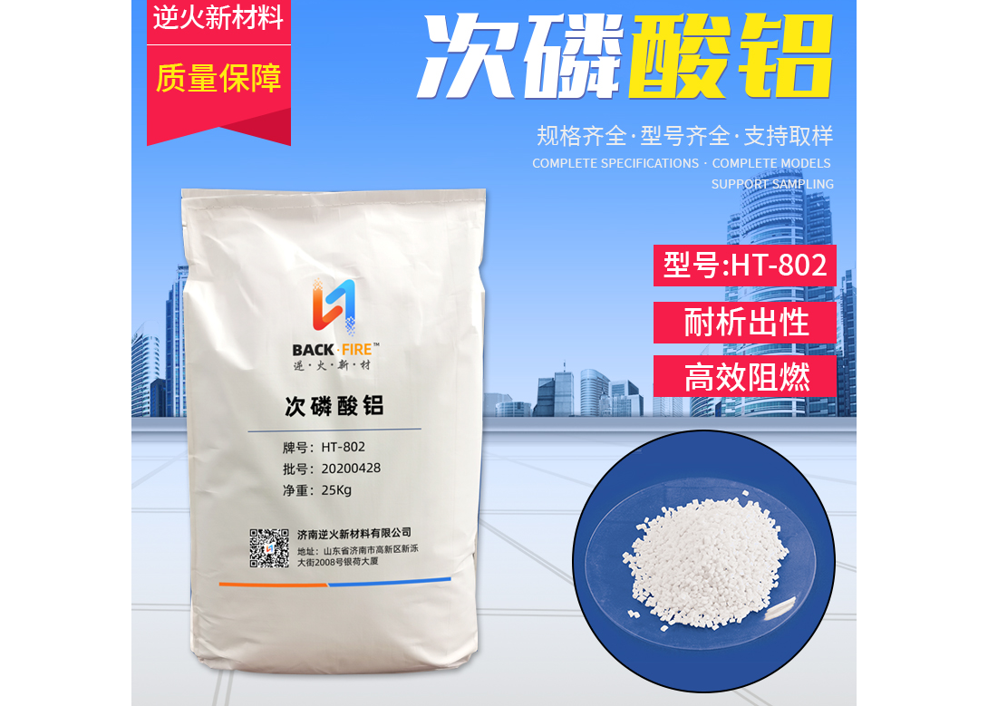 次磷酸铝,CAS:7784-22-7,化学式为Al(H2PO2)3,分子量为221.96,是一种微溶于水的新型磷系阻燃剂。不易挥发,且磷含量高,热稳定性好。制备和加工的塑料件的机械性能好,耐候性优异。