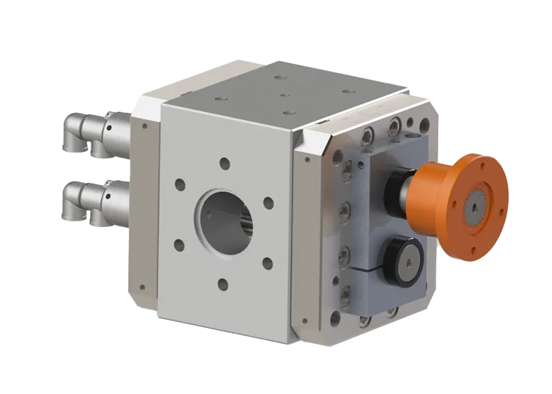 此泵主要用于橡胶及弹性体挤出工艺,内置冷却流道使温度控制更精确,更快速,与挤出机或密炼机等配套使用。(橡胶及弹性体专用的挤出系统熔体齿轮泵) 适用于橡胶及弹性体熔体的挤出输送;一般安装于挤出机出口与模头之间,作熔体计量泵用;该系列泵体内置流道,可以做冷却或者热媒加热用。 高效输送 无脉动 无死角快速换色 内冷精确控制料温