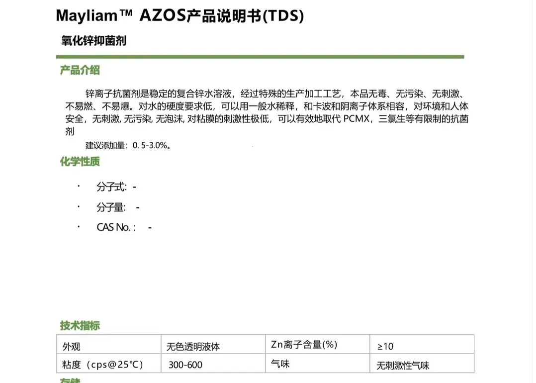 Mayliam AZOS 氧化锌抑菌剂 昌和化学新材料(江苏)有限公司