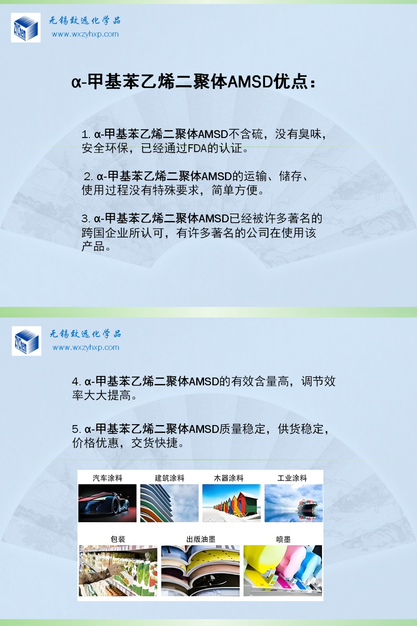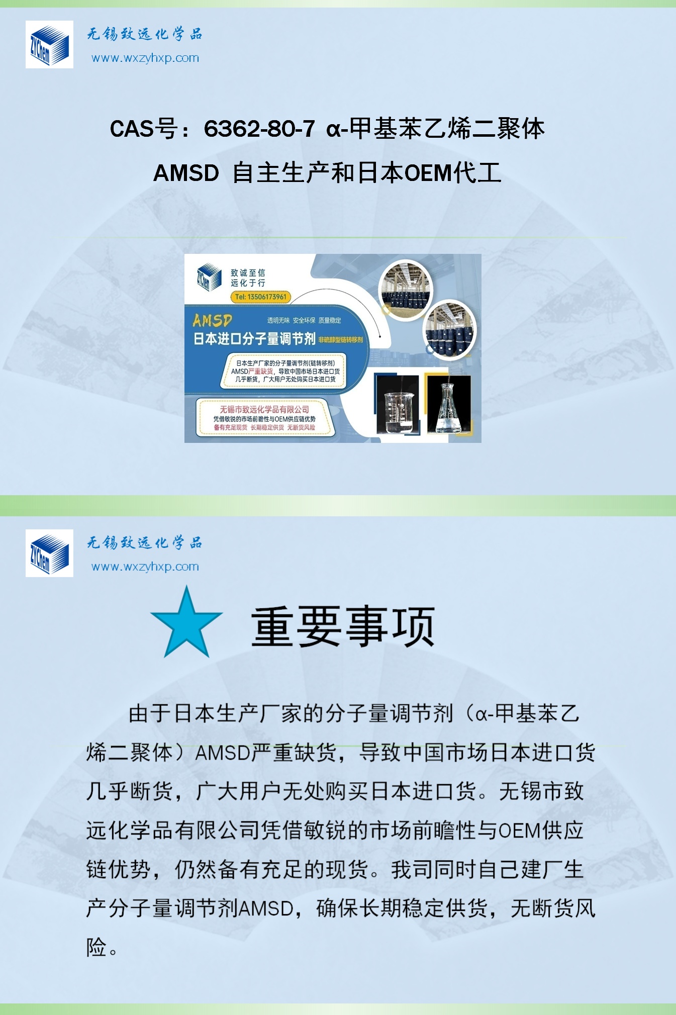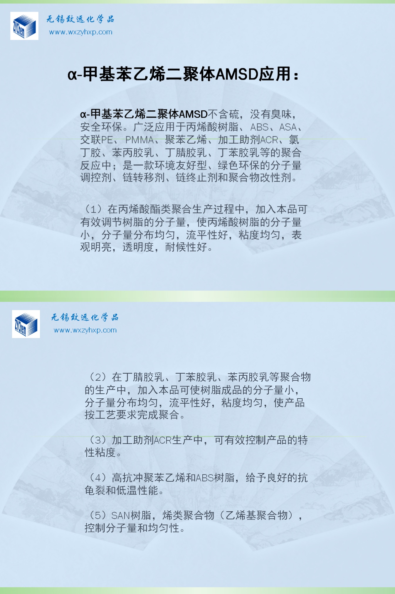 主营产品分子量调节剂,链转移剂,美国伊士曼纯单体树脂,增粘树脂,抗湿滑树脂,改性树脂,二聚酸,橡塑改性剂,固体增塑剂,固体偶联剂,AMS树脂