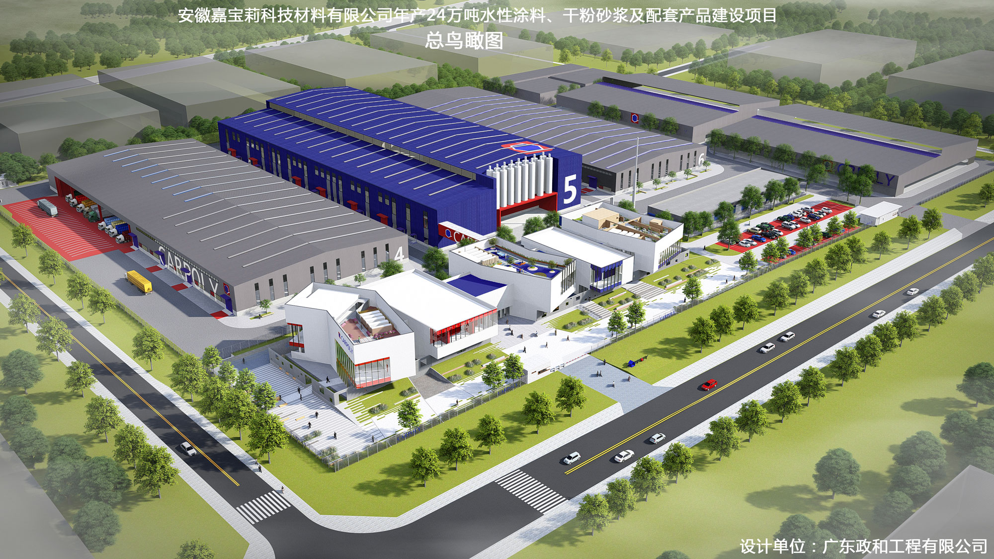 年产24万吨水性涂料及配套产品建设项目工程设计。生产60000t/a乳胶漆、100000t/a真石漆及质感涂料、10000t/a多彩涂料、10000t/a防水涂料和60000t/a干粉砂浆。项目占地面积约为119亩,总建筑面积约为57566.93㎡