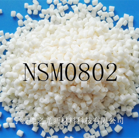 NSM0802结构上为丁二烯-co-丙烯酸丁酯-g-丙烯腈-马来酸酐共聚物,其与聚碳酸酯,尼龙类树脂具有良好的增韧相容性,可优化上述工程塑料的综合性能,使抗冲击性能与模量保持获得最佳的平衡,同时可改善聚碳酸酯材料抗应力开裂及对有机溶剂的敏感性。