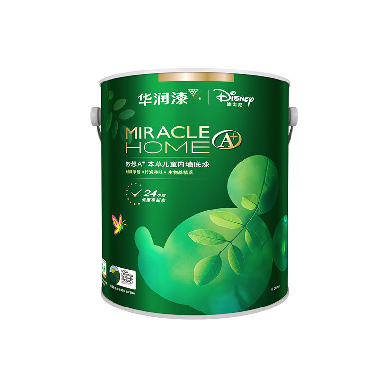 妙想A+本草纯环保儿童内墙底漆,专为儿童房的装饰保护而设计,每罐成品面漆中生物基含量均达到28%,以源自秸秆、玉米,木薯等可再生植物性的原料替代不可再生的石油化工产品,从源头携带环保基因。同时通过权威检测认证,获得法国室内空气环境监测最优级"A+”认证,24小时即可达到美国绿色卫士室内空气质量金级认证对有害物质的限制要求,真正实现24小时健康享新家。具有封固疏松基材、强效抗碱、提升面漆质感等多种功能。配套使用可避免因底材处理不当对面漆可能造成的伤害,确保对家居环境环保安全的持久呵护。