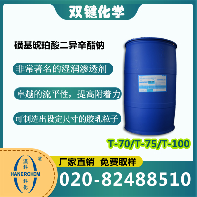本特性磺基琥珀酸二异辛酯钠盐的分子式 C20H37O7S.Na,分子量为 444.56,它无论是静态、还 是在动态条件下,是一个性能极佳的表面张力改进剂、卓越的润湿剂,也是非常效的乳化剂、 稳定性剂和分散剂。它向表面迁移速度快,到目前为止,它那大幅度降低物质表面张力、增 强渗透力和较强湿润能力的特征,是阴离子表面活性剂中表现得较完美的一个,也是非常著 名的湿润渗透剂。
