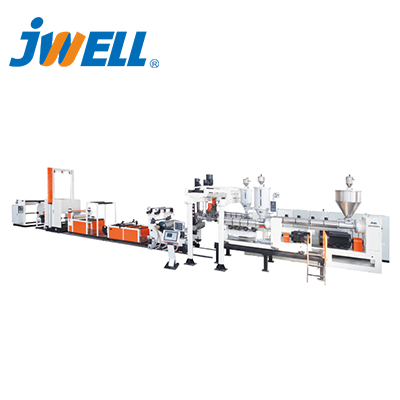 研制开发的PP/PS片材生产线,用于生产多层复合环保片材,该片材主要用于吸塑成型各类食品容器和包装,如:托盘、面 碗、饭盒、糕盒、水果盘等。该设备可有效的利用石粉比例,既降低片材原料成本,又提高片材的可降解性并保证片材的综 合物理性能和后续可加工性能。