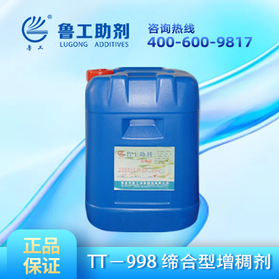 TT-998缔合型增稠剂与所增稠的乳胶漆乳液含量有关,乳液含量越高,则用量越小。润湿剂、乙二醇、丙二醇、色浆等加入会增加本产品用量但流平性增加。如粘度过高可加润湿剂减小粘度提高流动性。本产品遇碱会发生凝结,在加入前,用适量的水稀释,并且在良好的搅拌条件下,缓慢加入。如混合后未达所需粘度,且PH<7,请在充分搅拌下慢慢加人,用氨水或多功能助剂或多功能助剂等碱类物质,中和至所需粘度。一般情况下,添加量为0.3%-0.6%,建议测定一个合适的用量。
