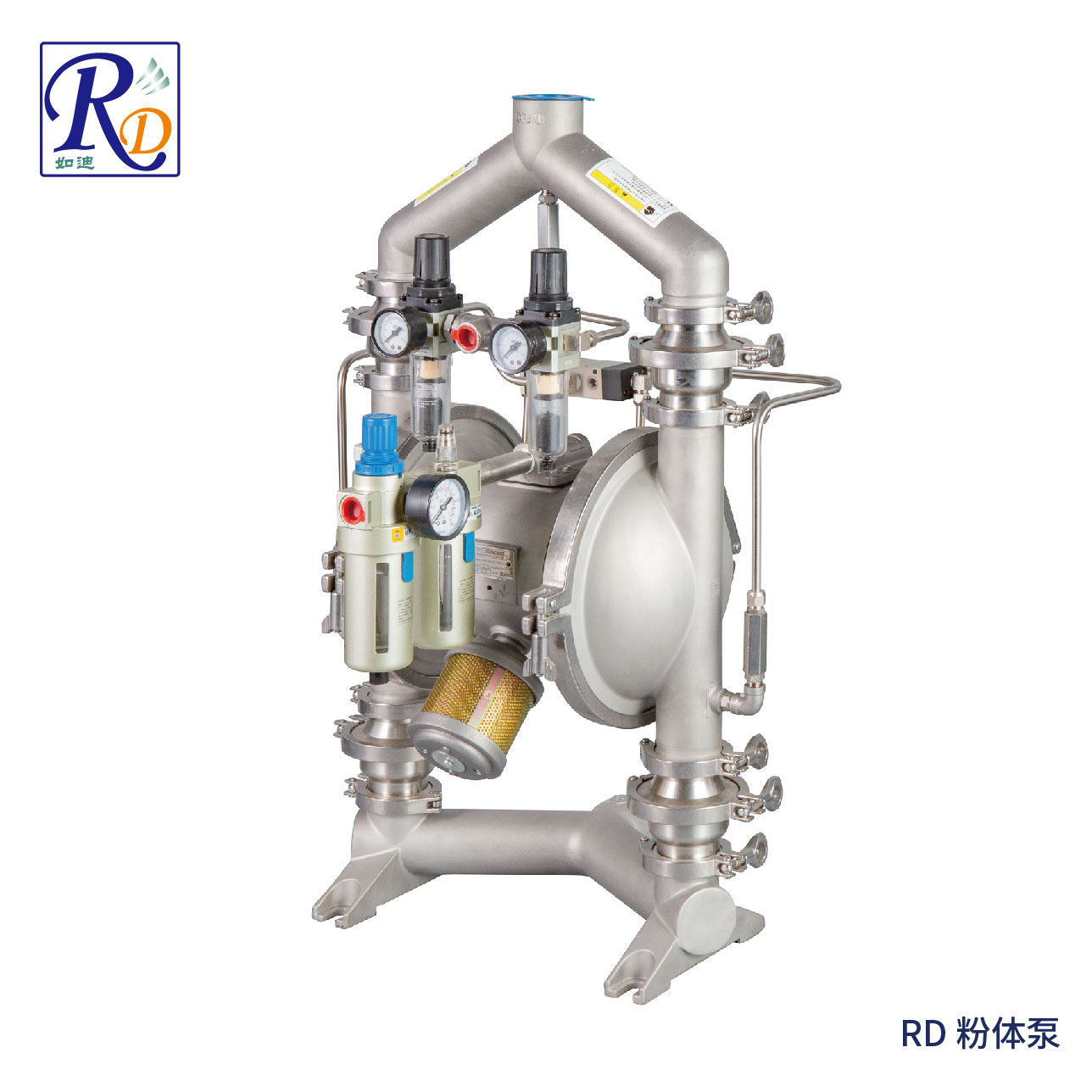 RD粉体输送泵是一种全新的气动高效轻质粉末输送泵,能更快速、更清洁的输送和处理各种干式工艺制备的粉末;采用完全封闭的输送模式,直接把粉末输送到你的配方处,减少工作环境的粉尘污染;可以方便的随处移动使用,即放即用,便于安装调试安装;泵体材质有铝合金、SUS316。粉料堆积密度必须小于0.8g/cm³而且干燥,小于等于150目,输送距离与颗粒大小堆积密度有关(二氧化硅45m,面粉12m),密度越大输送距离和流量越小。