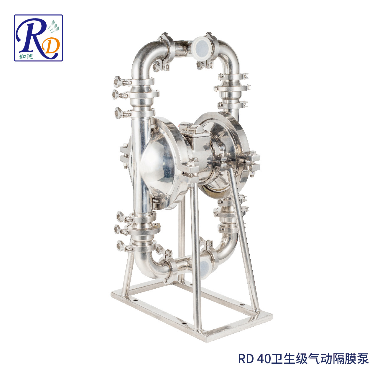 RD 卫生级气动隔膜泵是为具有卫生等级需求工况而开发的,主要就用于食品、医药行业。此泵非常适合要求设备表面达到电抛光 32Ra 的应用场合,采用卡箍拆卸设计,操作方便。泵体材质为食品级不锈钢,膜片材质为食品级特氟龙或三元乙丙橡胶,流体接触区域均符合 FDA 标准。