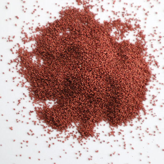 橙红色烧结彩砂是一种以矿物颗粒(石子)为原料,加入无机颜料和特殊涂层,经过高温烧结制备